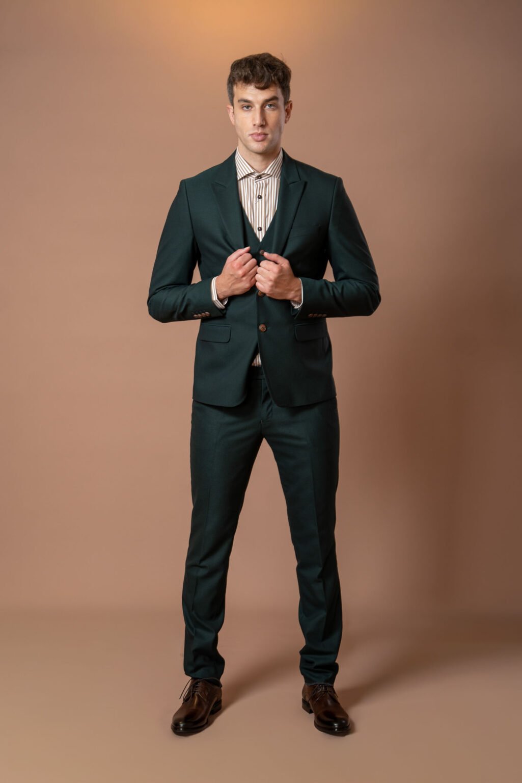 Suptilna elegancija i savremeni kroj susreću se u ovom pažljivo oblikovanom maslinastom odelu brenda Martini Vesto. Dizajnirano za muškarce sa istančanim osećajem za stil, ovo odelo donosi besprekoran balans između klasične forme i modernog izraza.