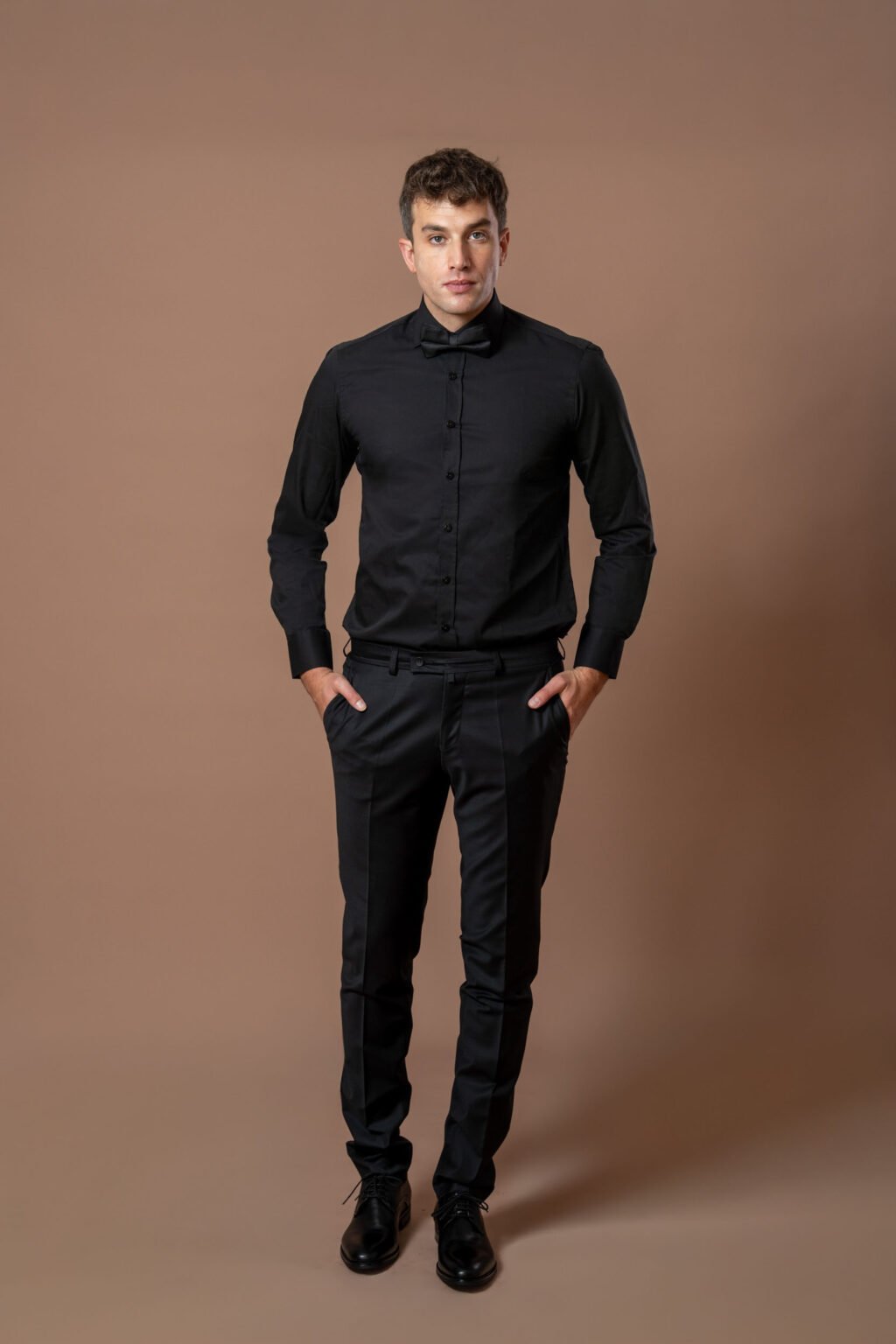 Ove elegantne crne pantalone Martini Vesto izrađene su za muškarce koji preferiraju moderan, prefinjen izgled uz besprekornu udobnost. Krojem sa užom nogavicom naglašavaju liniju tela i stvaraju izduženu siluetu, dok pažljivo odabrana mešavina materijala osigurava lakoću pokreta i besprekoran pad tkanine. Idealne su za kombinovanje sa košuljom, sakoom ili blejzerom – savršen izbor za poslovne prilike, večernje događaje ili elegantne casual kombinacije.